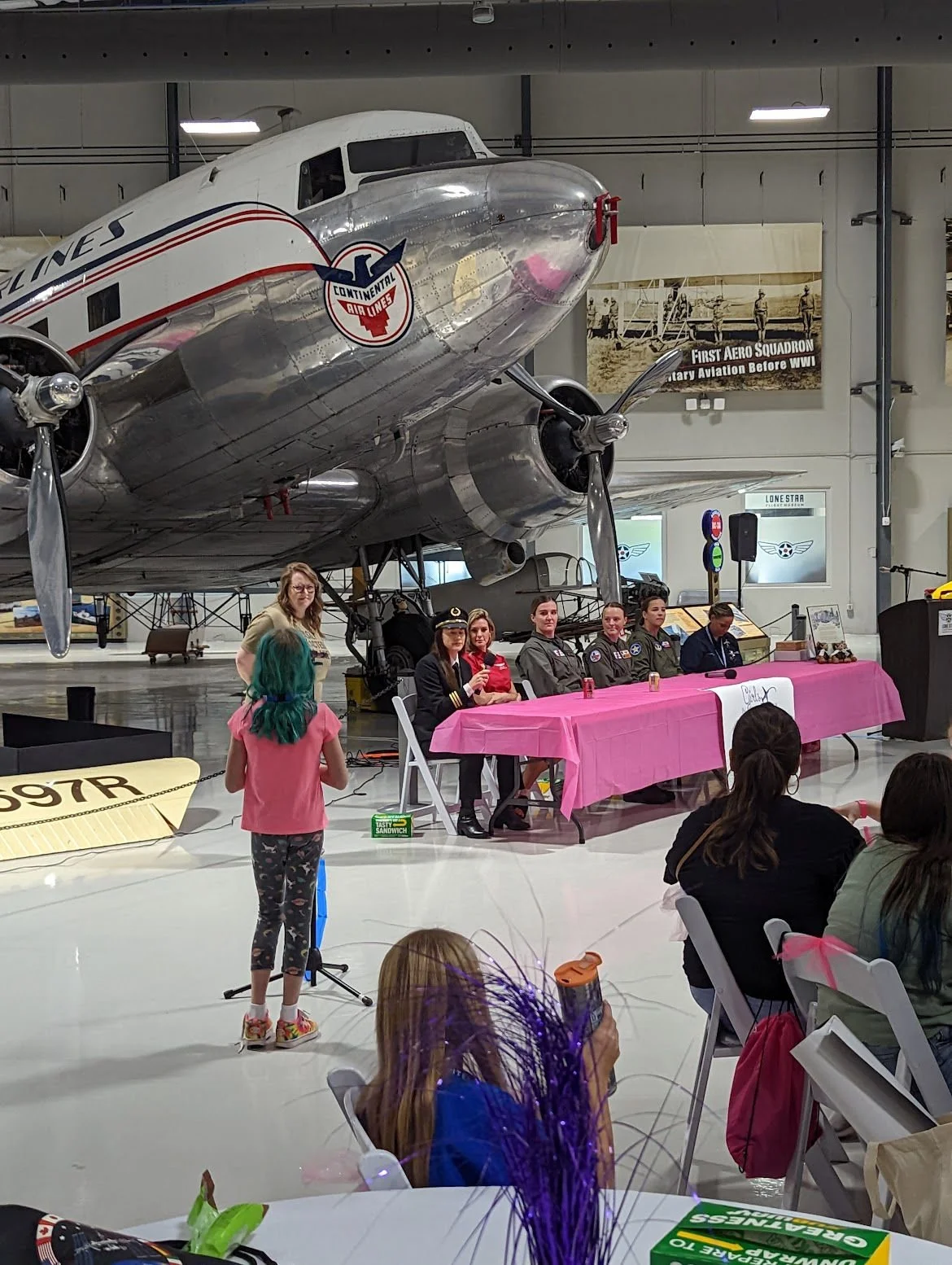 At 1:00 pm, all the girls and parents gathered in the DC3 Hangar to eat lunch and ask questions to a group of panelists. Julieta Triana Vásquez, a female Latina pilot working for SkyWest Airlines was the panelist representing the LPA. She shared some of her life experiences as a pilot and her transition from her life in Colombia to Airline Pilot here in the US. She was also interviewed by Fox 26 News where she invited the community to join the Latino Pilots Association. See the Fox 26 News interview at: Fox26Houston-Click Here